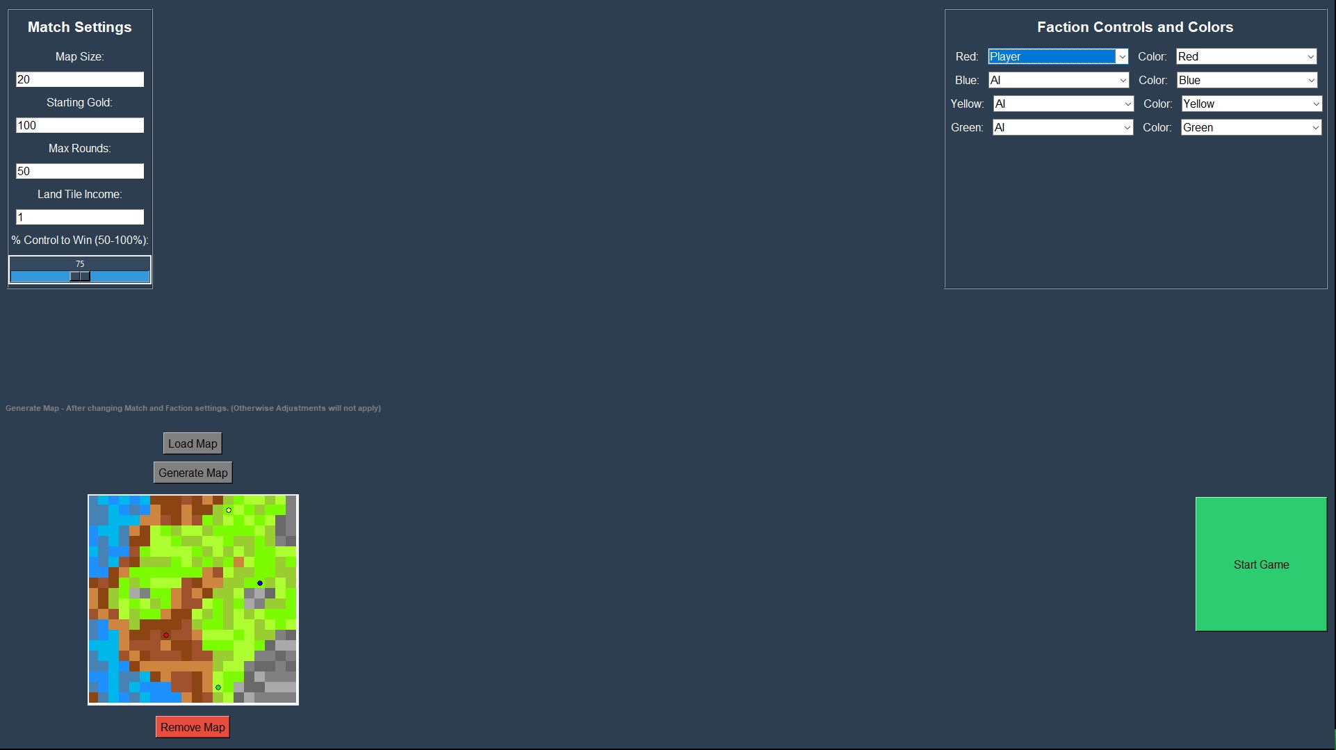 Expand and take over territory, either destroy all the other enemy HQ's and keep yours alive or control the most territory at the end of the match to win!
